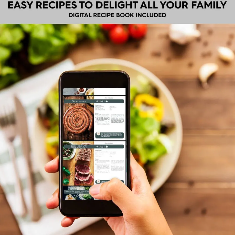 | 8 esiasetettua ohjelmaa: ranskalaiset perunat, nugetit, kana, liha, kala, vihannekset, pizza ja jälkiruoat |