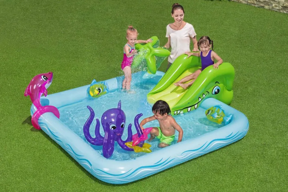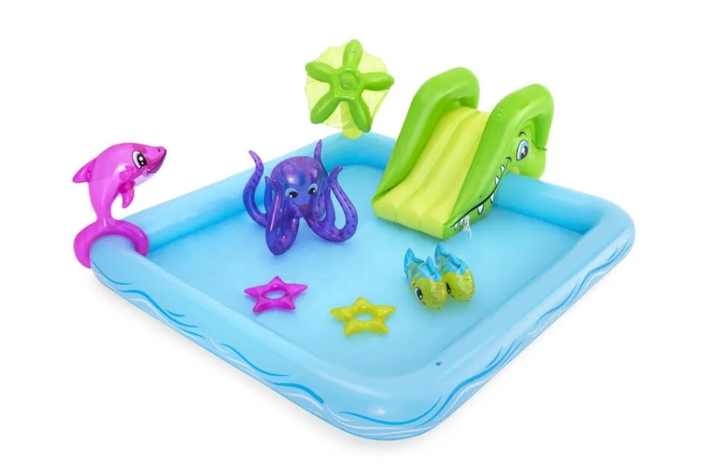 Leikkialtaassa on monta hauskaa leikkikaveria: delfiini, kaksi klovnikalaa ja mustekala. Lisää hauskuutta tuo hippo-li…