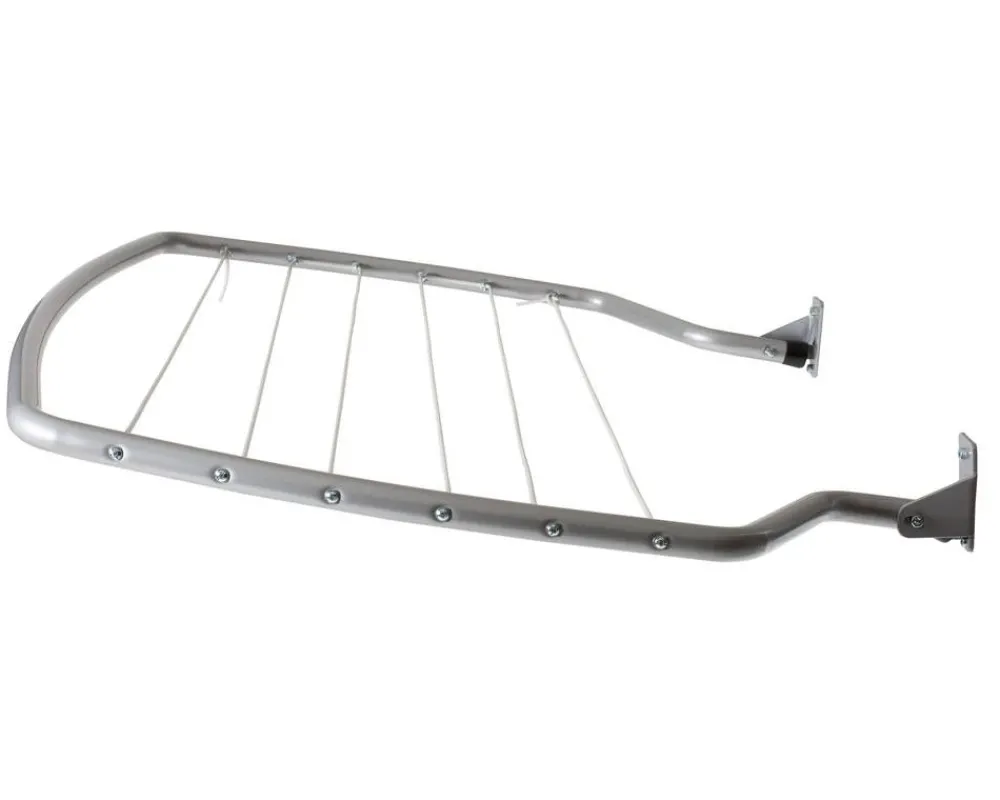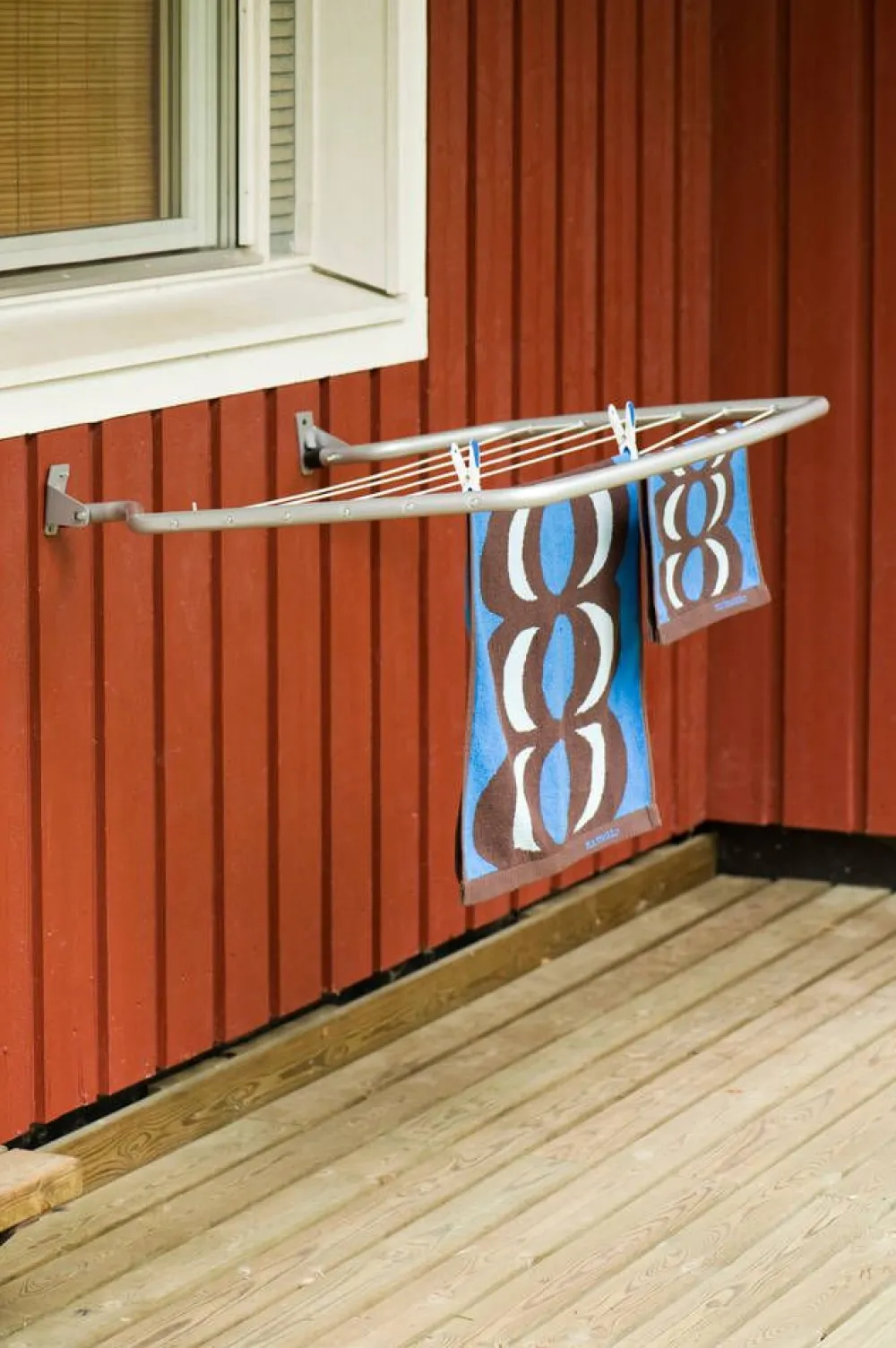 Alastaitettavassa pyykkiritilässä on harmaaksi pulverimaalattu teräsputkirunko, joka on esikäsitelty Bonderite NT:ll…