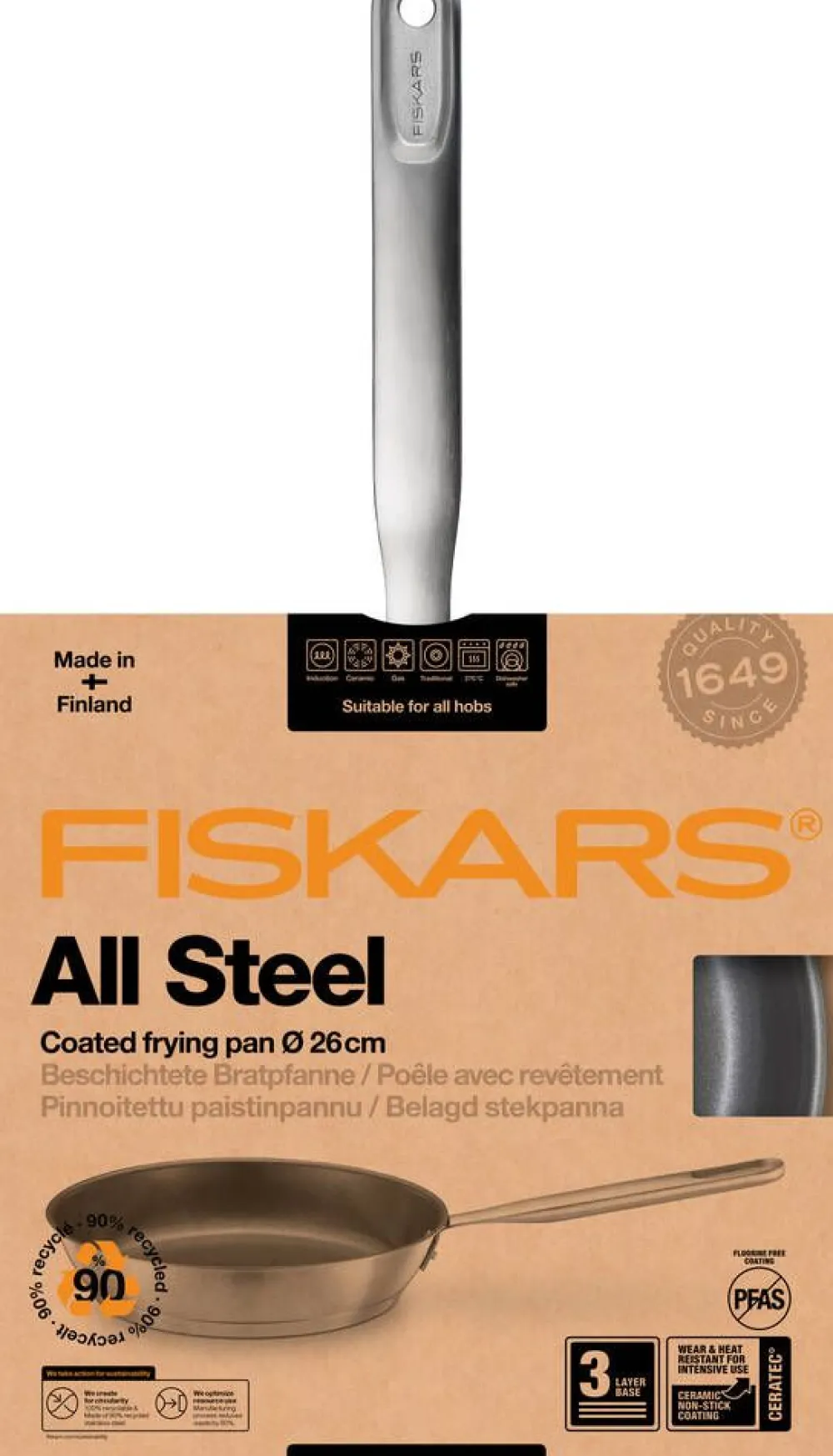 | Tarttumaton Ceratec™-pinnoite ruskistaa ruoan kauniisti ilman fluoria tai muita haitallisia kemikaaleja |