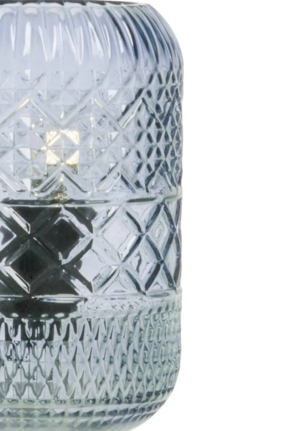 Anetan Minna on kaunis, sinertävän värisestä, kuvioidusta lasista valmistettu pöytävalaisin. Katkaisija liitosjohd…