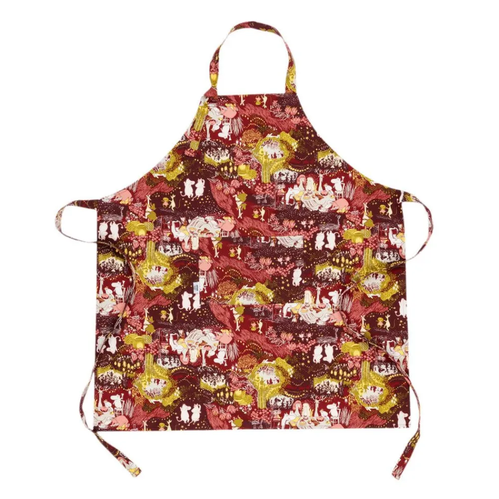Tuo keittiökokeiluihisi ripaus taikaa ja tyyliä muumi-esiliinalla. Kaunis esiliina on osa Muumi 80 Juhlan aika -kokoel…