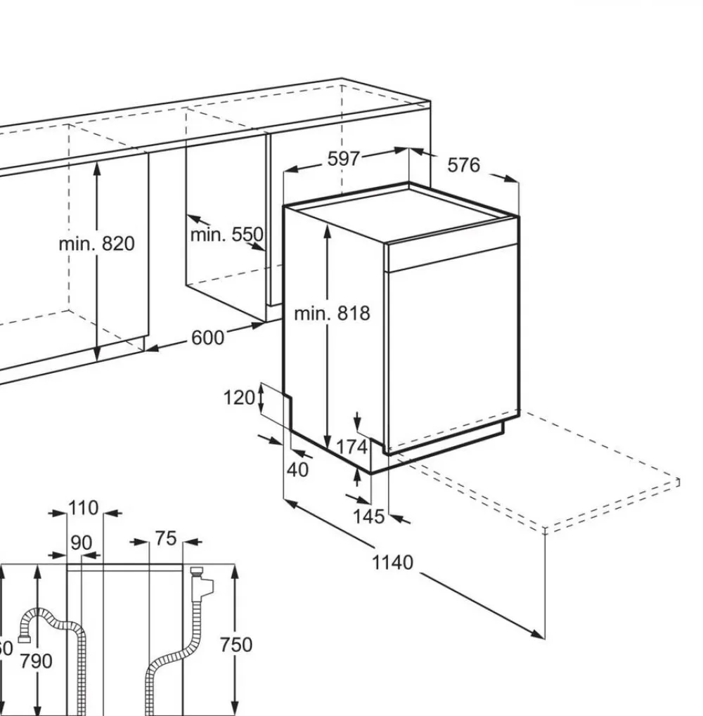 | Mitat:Korkeus (mm): 818. Leveys (mm): 597. Syvyys (mm): 576. |