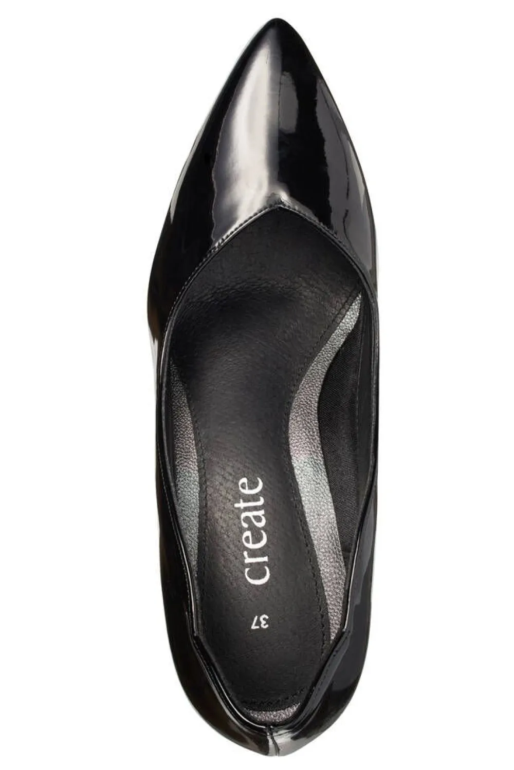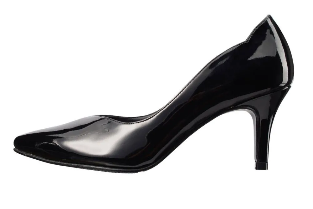 Naisten PU-lakeripintaiset sirokorkoiset kengät, joissa on terävä kärki, muotoiltu kanta sekä v-leikkaus päällä….
