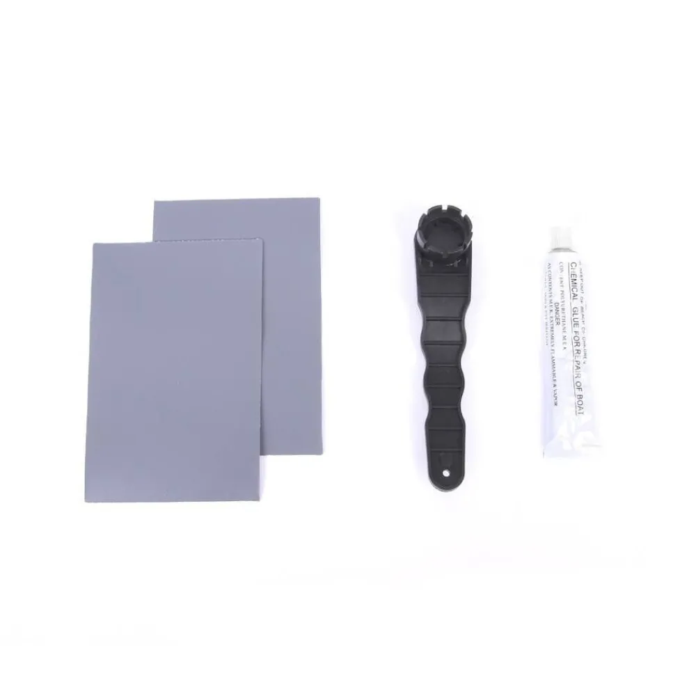 | Renkaan mukana tulee kätevä jalkapumppu, jolla saat nopeasti renkaan täytettyä paikan päällä. |