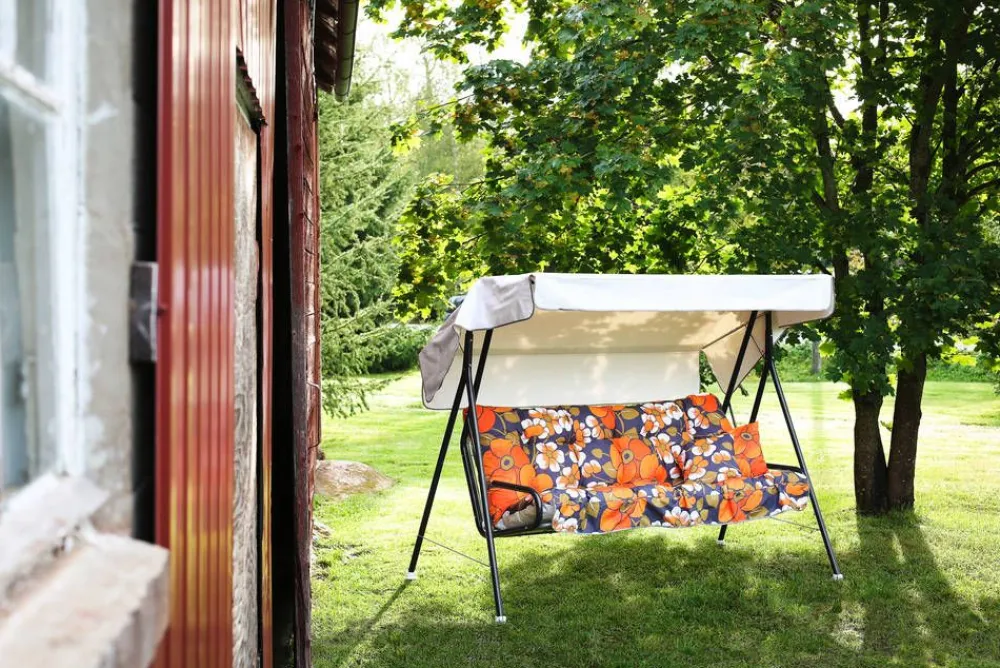 | Materiaali:Runko terästä, sinkitty metalliverkko, Tekstiili: puuvilla-polyesteri sekoite, PVC |