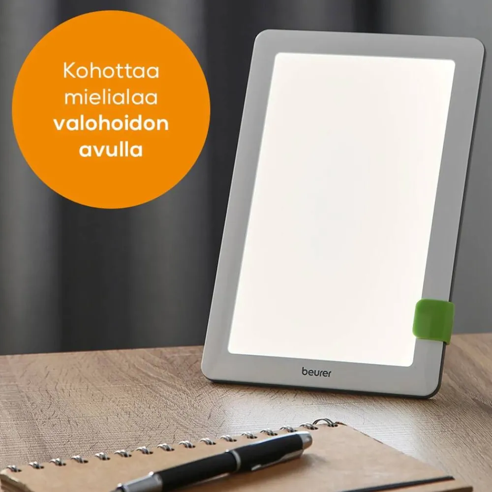 | Beurer TL30 -kirkasvalolamppu on kompaktin kokoinen työpöydälle tai mukaan matkalle. Pienen kokonsa ansiosta lamppu on myös helppo sijoittaa lähellesi vaikkapa työpöydällä. Tasaisen kirkas ja välkkymätön valo on lempeä silmille. Laite on asetettavissa pysty- tai vaaka-asentoon. Kätevällä jalustalla voit asettaa laitteen kahteen eri kallistuskulmaan. |