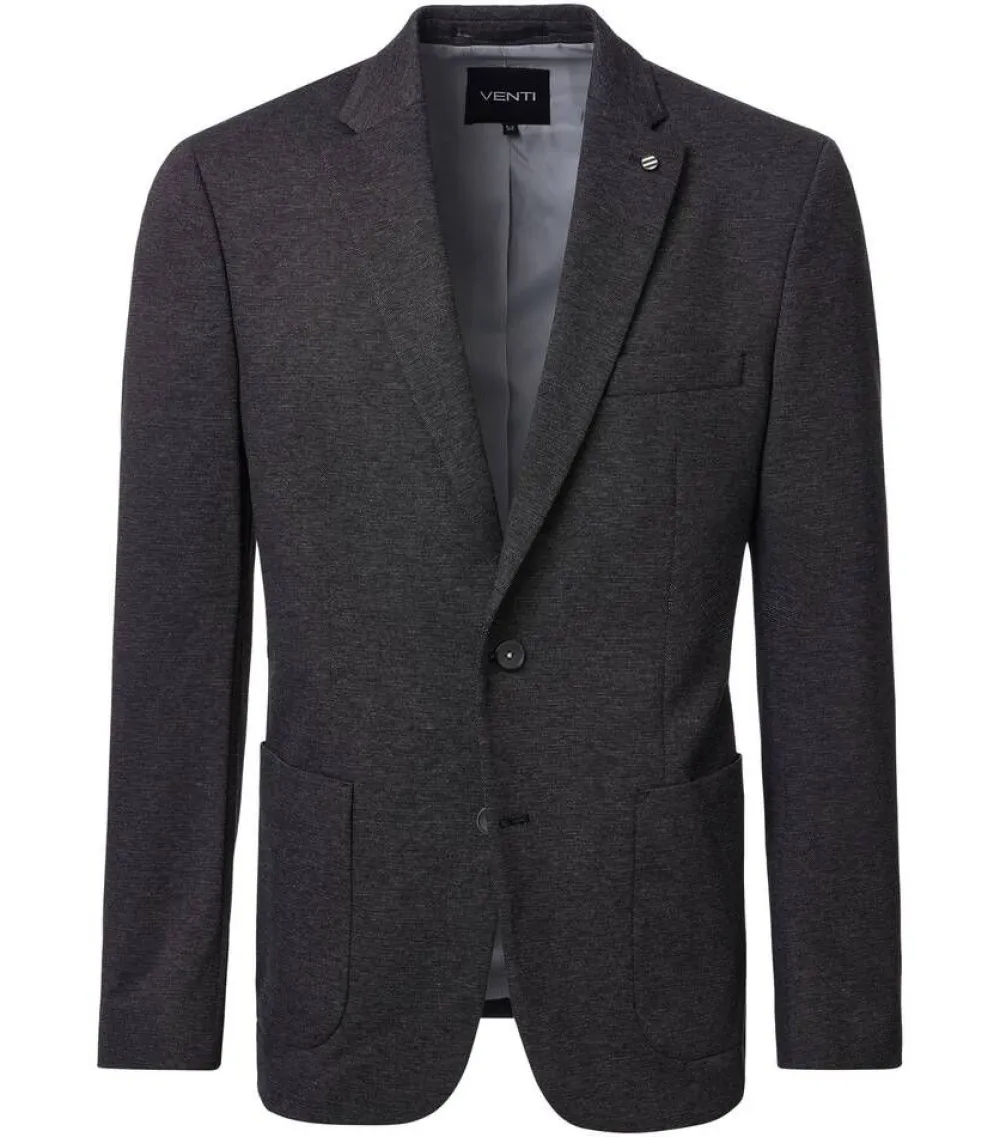 Tyylikäs blazer tilavilla paikkataskuilla ja rintataskulla. Edessä on kaksi nappia ja kauluksessa raidallinen koristen…