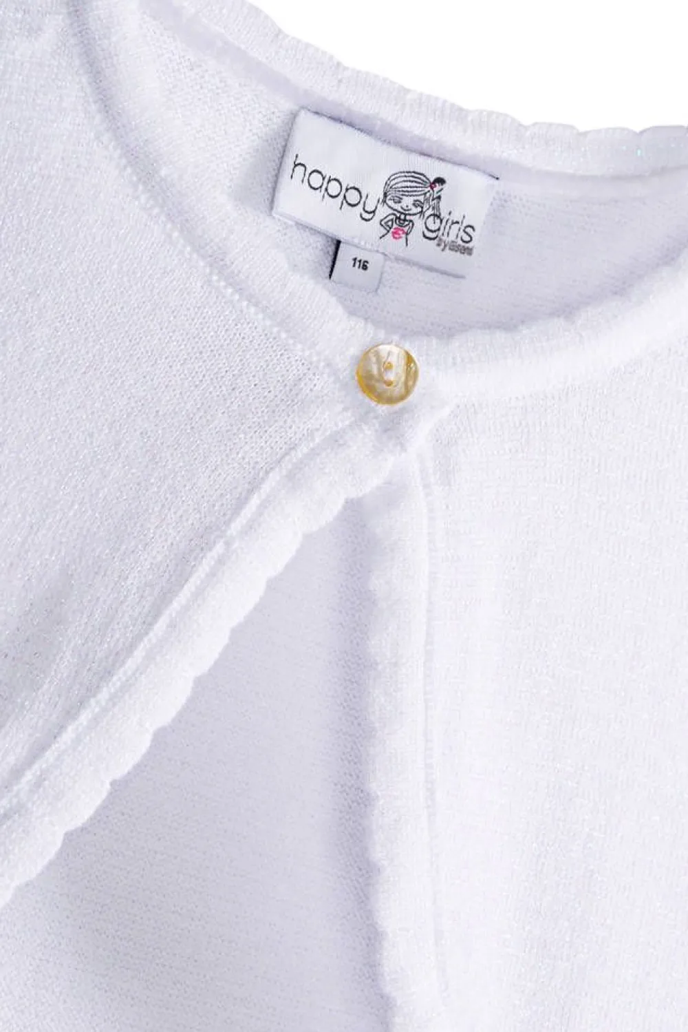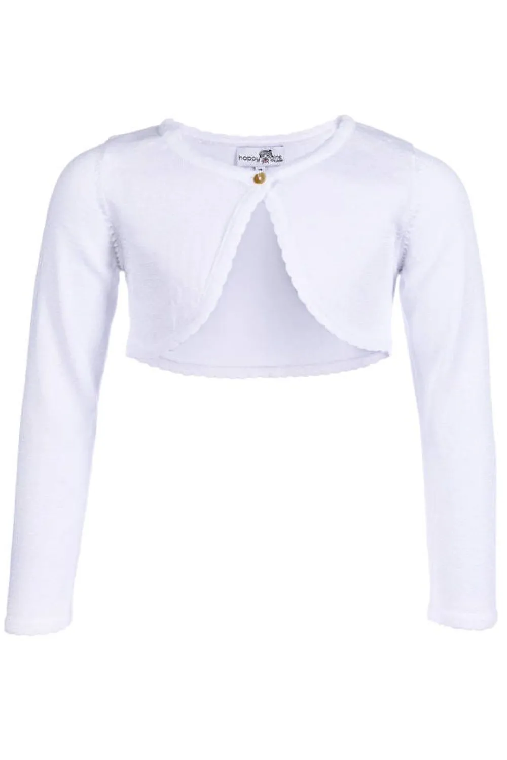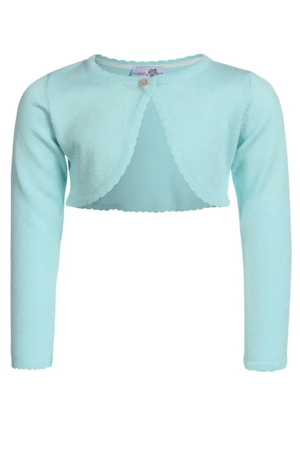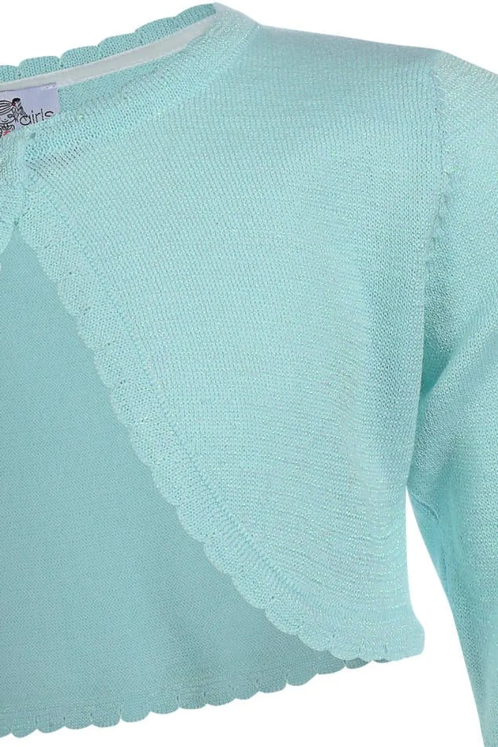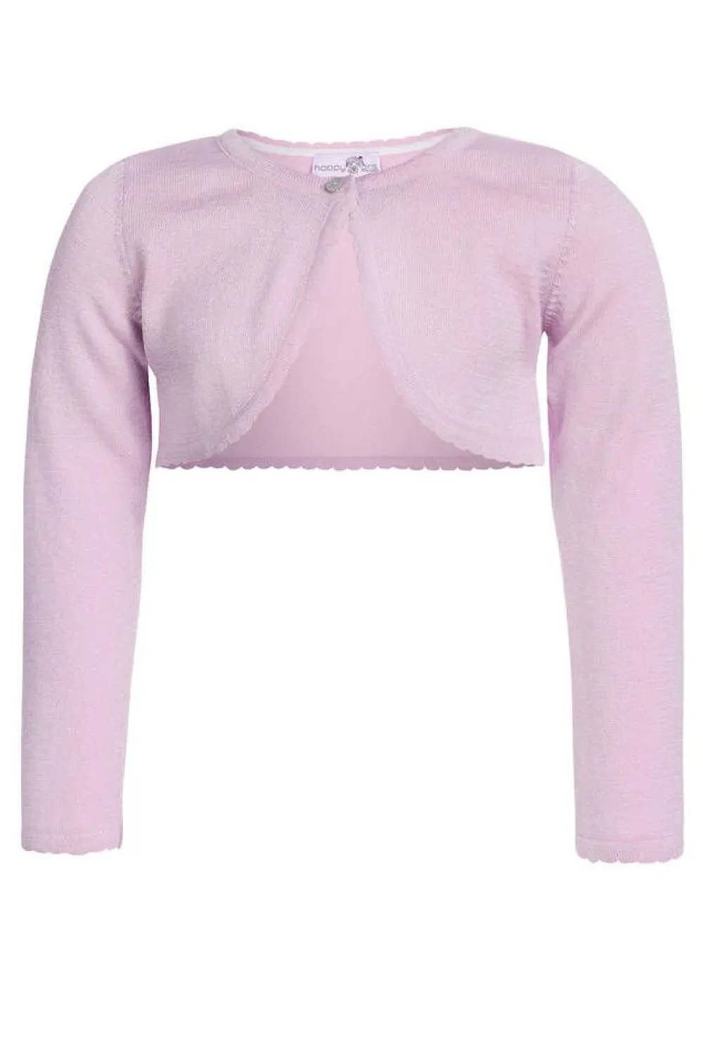 Tyttöjen pitkähihainen neulebolero jossa on kimalletta ja nappikiinnitys. Koon 122 keskitakapituus on 26 cm.Lisää ti…