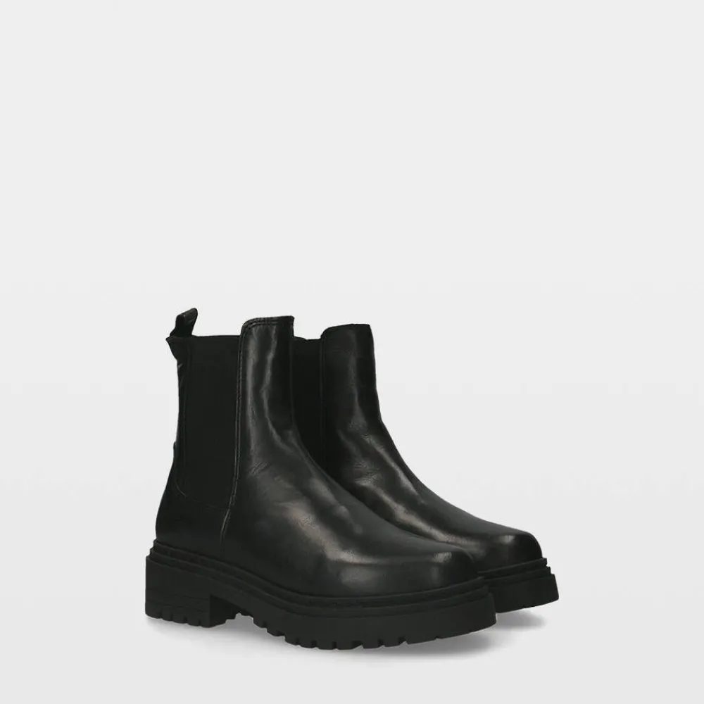 Naisten nahkapintaiset nilkkurit paksulla pohjalla. Varren sivuilla olevat venykkeet helpottavat nilkkureiden jalkaan pu…