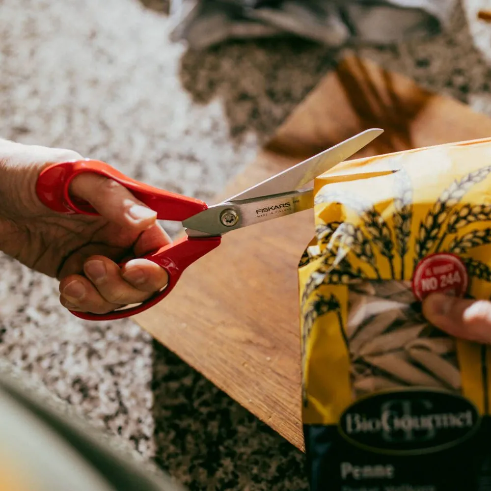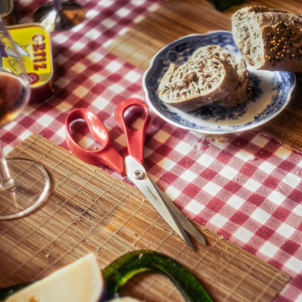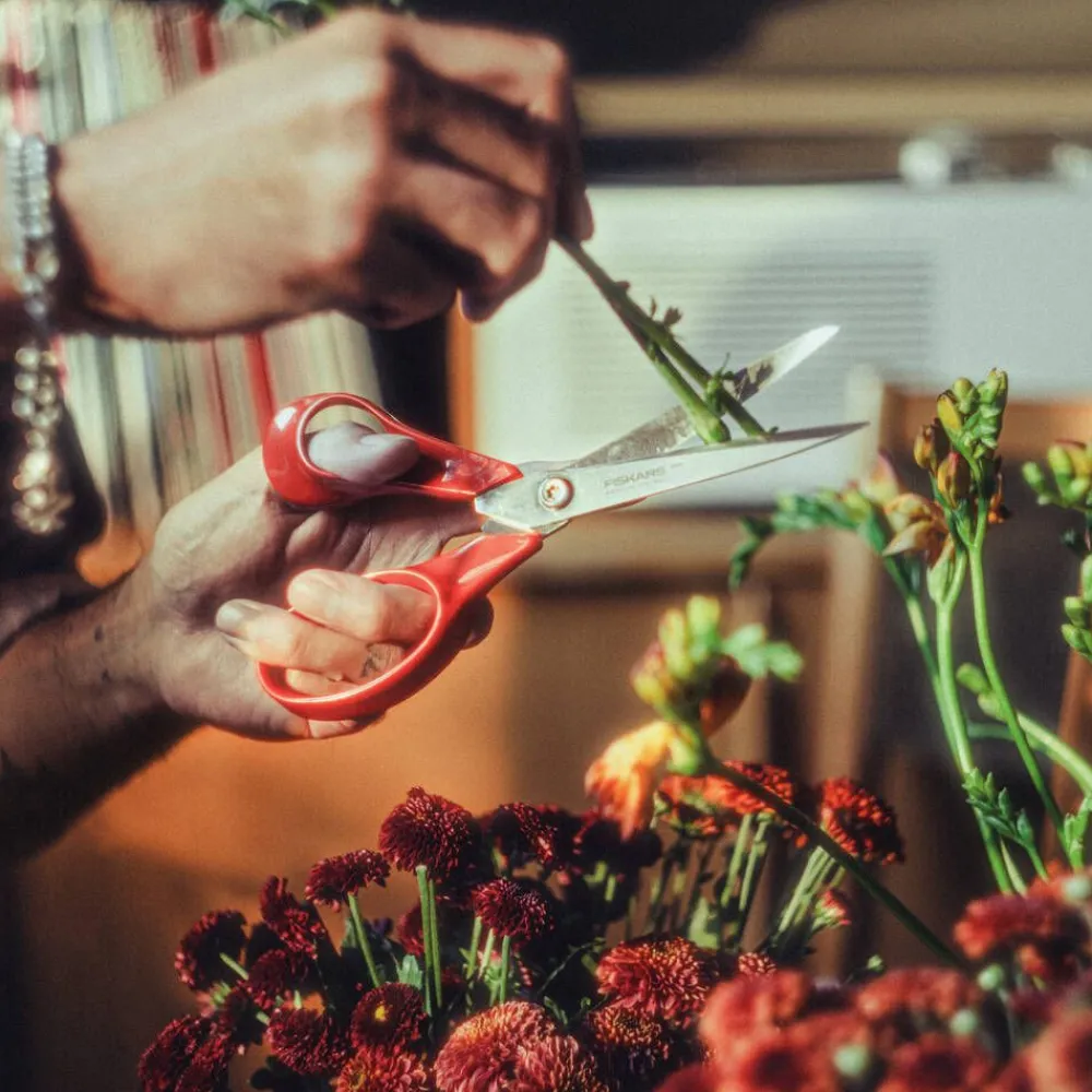 | Saksien leikkuuteho säilyy parhaana, kun terät teroitetaan säännöllisesti Fiskarsin teroittimella ja nivel öljytään aika ajoin. Käytön jälkeen sakset on hyvä puhdistaa, pestä ja kuivata heti, jotta esimerkiksi ruoka-ainejäämät eivät pääse tarttumaan. Lisäksi terän ruuvin kireyttä voidaan tarvittaessa säätää optimaalisen toimivuuden varmistamiseksi. |