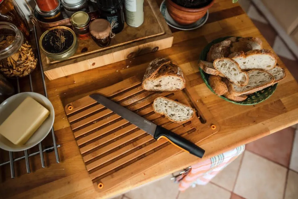 Pitkä sahalaitainen terä on ihanteellinen kovakuorisen leivän leikkaamiseen. Terä on valmistettu lujasta japanilaisesta ruostumattomasta teräksestä ja veitsen turvallisessa ja ergonomisessa kahvassa on syvä sormisuoja. Kaikki Fiskars Functional Form -veitset ovat konepestäviä.