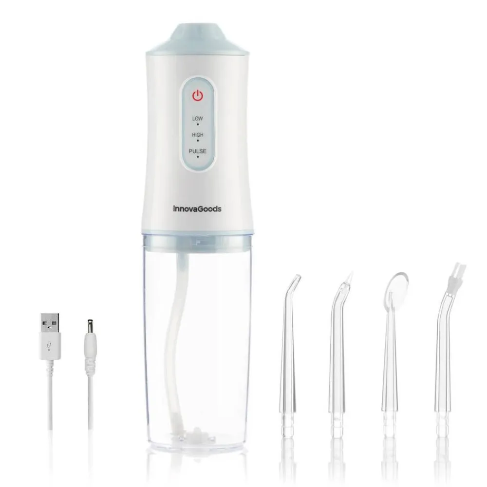 | Yhden myyntipakkauksen sisältö:Ladattava ja langaton hammasvälisuihku. 4 erilaista suutinpäätä: vakiosuutin, oikomishoitoon tarkoitettu (ortodonttinen), parodontaalinen ja kielen puhdistukseen tarkoitettu suutin). USB-latauskaapeli (laite ladattavissa USB-lähteestä). Käyttöohje 24 eri kielellä, mukaan lukien suomi. |