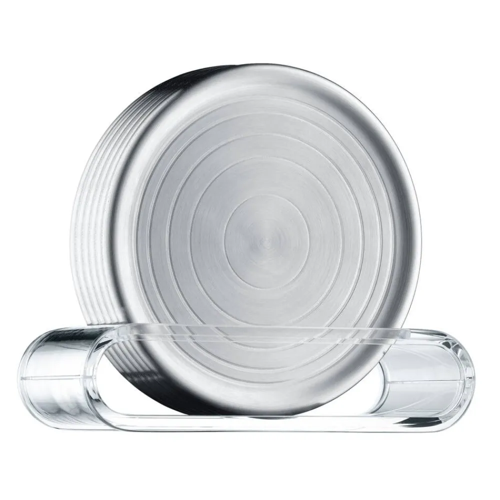 | Yhden myyntipakkauksen sisältö:Teline + 6 lasinalusta |