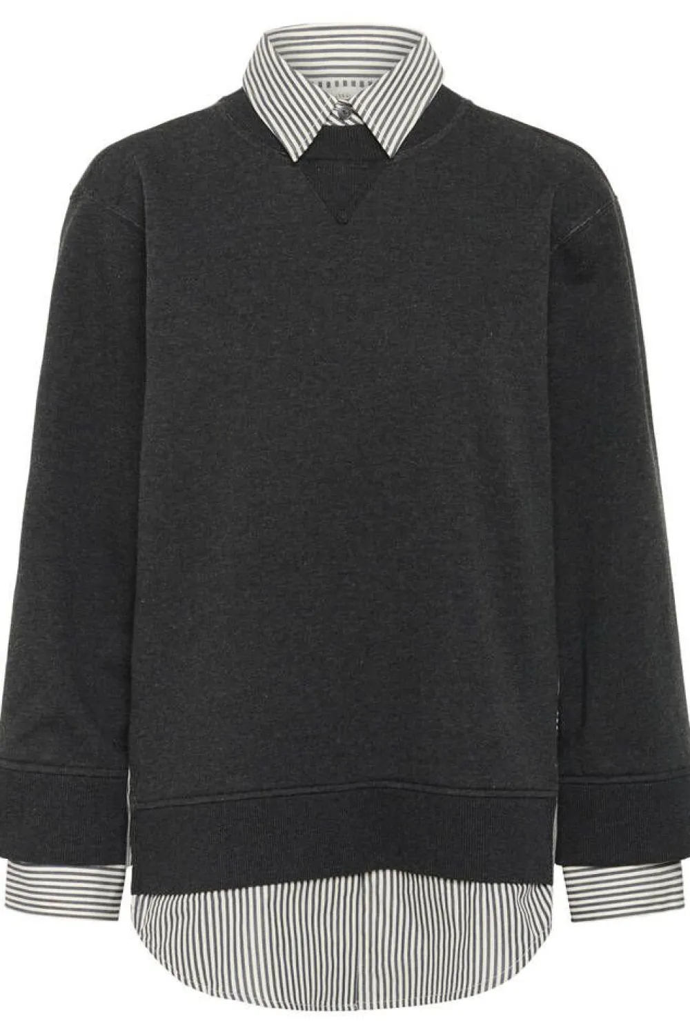 Trendikäs oversized collegepaita, johon on yhdistetty kaulukset ja kauluspaidan helma, sekä hihansuut. Muotoilussa on …