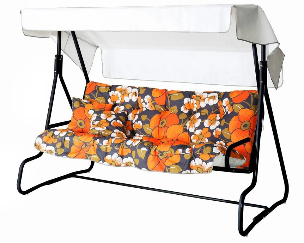 | Hoito-ohjeet:Keinun voi puhdistaa pyyhkimällä kostealla liinalla ja käyttää tarvittaessa mietoa pesuainetta. Suosittelemme, että pehmusteet nostetaan sateella suojaan ja katos otetaan pois rankkasateiden ja kovien tuulien ajaksi. |