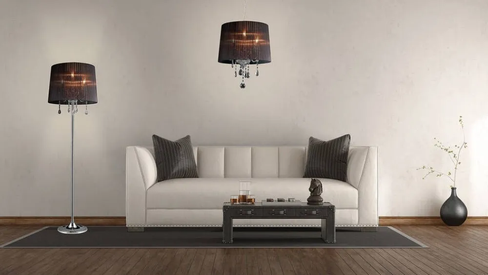 Crystal-valaisinsarjassa yhdistyy kiiltävät kristallit ja moderni mustakromi täydennettynä läpikuultavalla nauhavar…