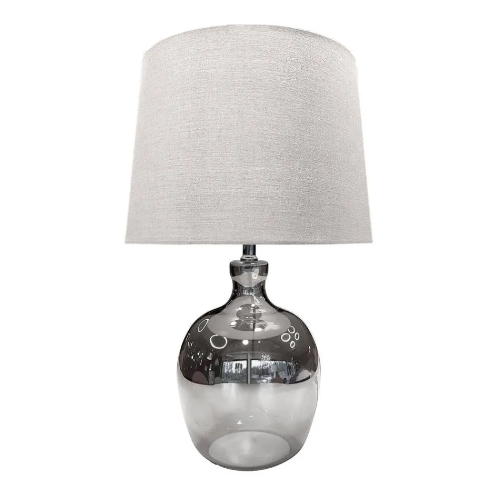 Hämyisesti peilaava lasinen runko ja kauniin harmaa pellavavarjostin luovat todella rauhallisen tunnelman tilaan kuin t…