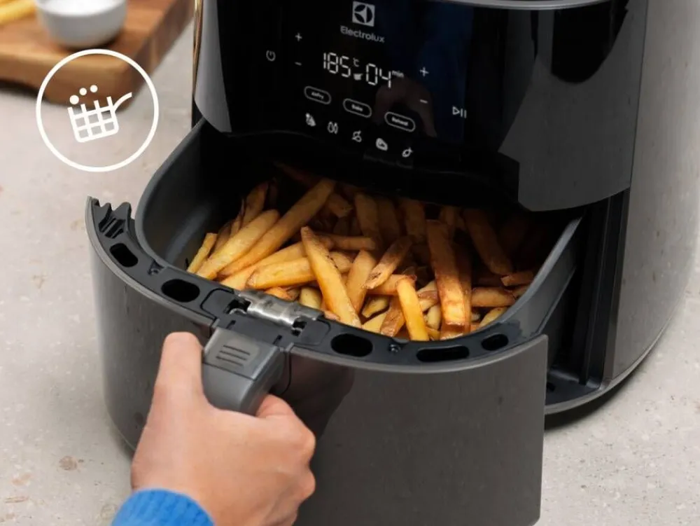 | LED-näyttö kosketusnäytöllä, 8 esiasetettua ohjelmaa, lämpötilan säätö: 60-200 °C, ajastin: 0-90 minuuttia, ravistusmuistutus. |