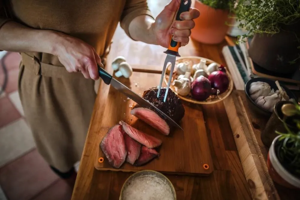 Paistihaarukka kaikenlaisten lihojen käsittelyyn. Terä on valmistettu lujasta japanilaisesta ruostumattomasta teräksestä ja haarukan turvallisessa ja ergonomisessa kahvassa on syvä sormisuoja. Konepestävä.
