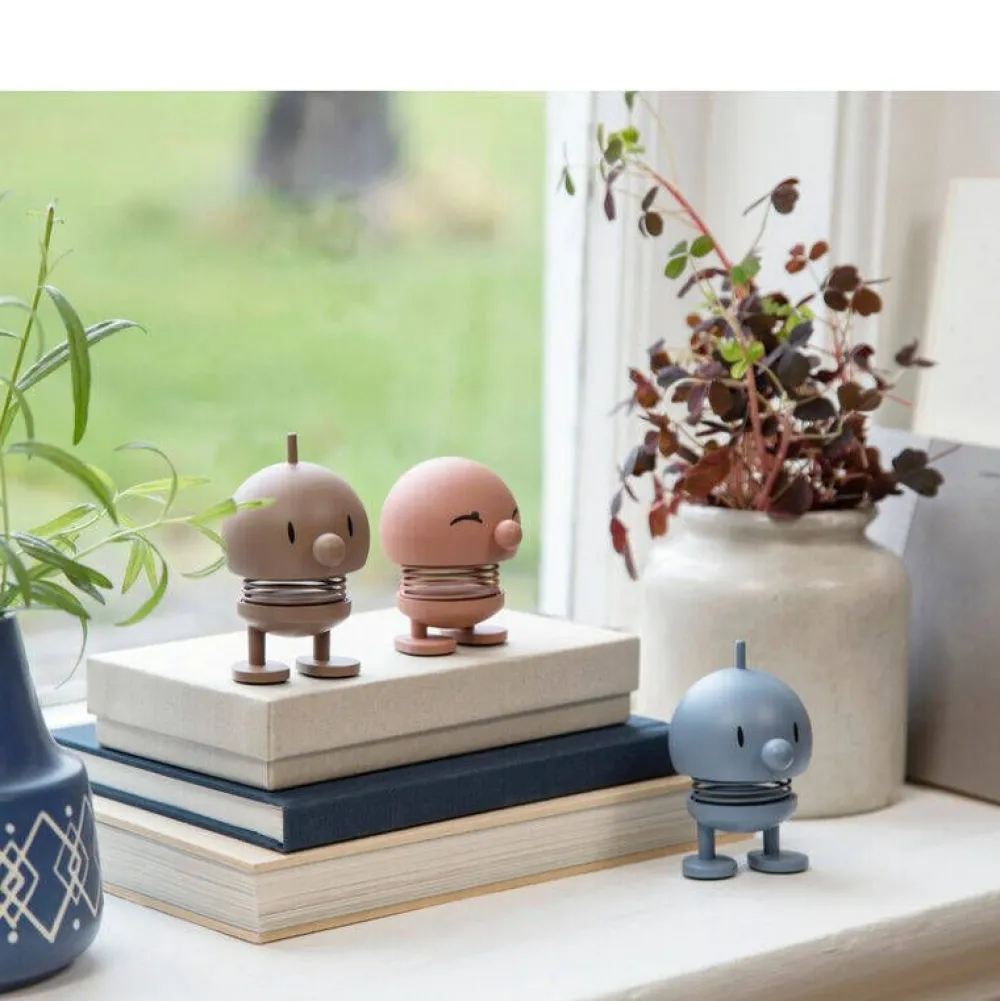 | Bimble ja Bumble edustavat Ehrenreichin suunnittelemia ensimmäisiä Hoptimisteja: Tyttö hymyilevin silmin mekossa ja tarkkaavainen, utelias poika, jolla on tuuhea hiustupsu. Nykyään iloiset Hoptimistit ovat osa tanskalaisen muotoilun historiaa ja he levittävät iloa ympäri maailmaa. |