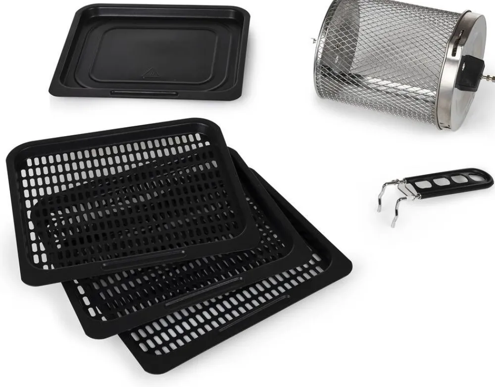 | Uunissa on 10 esiohjelmoitua asetusta perunoille, pihveille, kakuille, pizzalle, leivälle, kalalle, katkaravuille, kanalle sekä ohjelma kuivattamista varten. |