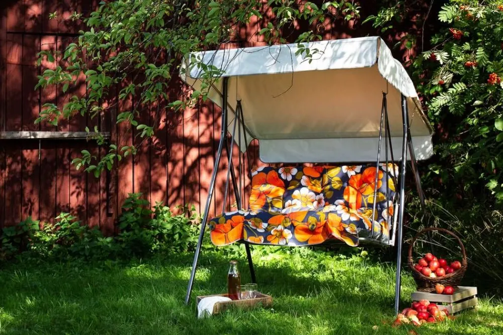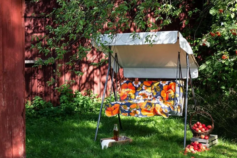 | Materiaali:Runko terästä, sinkitty metalliverkko, Tekstiili: puuvilla-polyesteri sekoite, PVC |