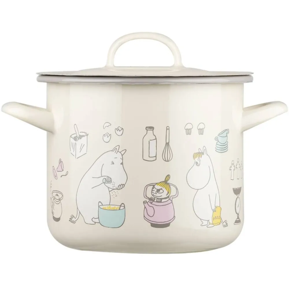 Muumi emalikattilan sydän on hiiliterästä, jonka päällä on kaksinkertainen emalointi. Voit käyttää kattilaa kai…