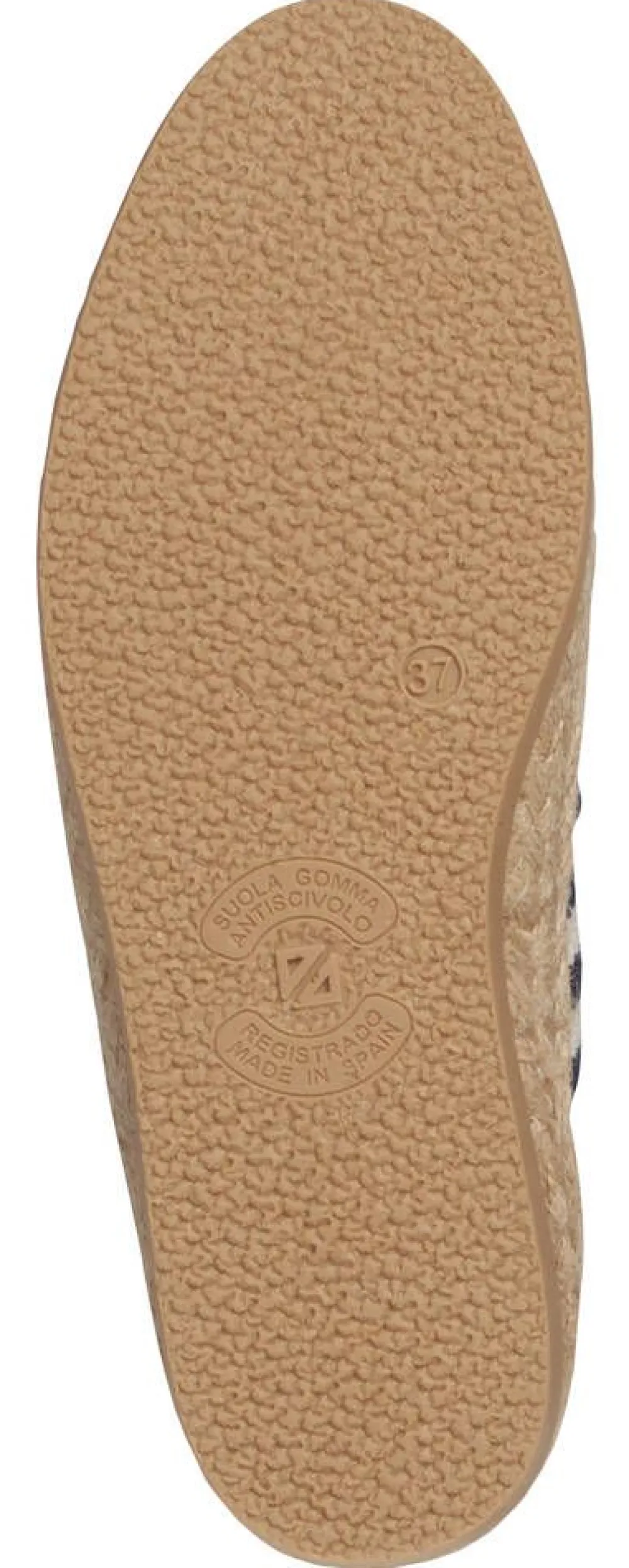 Raidalliset kangaskengät punotuilla yksityiskohdilla. Päällä oleva venyke helpottaa kengän puettavuutta.Lisää tie…