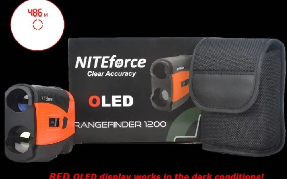 | NITEforce OLED Rangefinder 1200 on kompakti etäisyysmittari mukaan. Se mittaa kohteet väliltä 5m – 1200m napin painalluksella. Mittaustarkkuus on +/- 1 metri. Mitattu matka näkyy laitteen sisäiseltä OLED näytöltä terävän punaisena jonka ansiosta näet lukemat myös hämärissä olosuhteissa. Etäisyysmittarin sisäinen 6x suurennos on erinomainen niin lyhyille kuin pitkillekin mittausmatkoille. Sopiva suurennos toimii samalla kiikarina. |