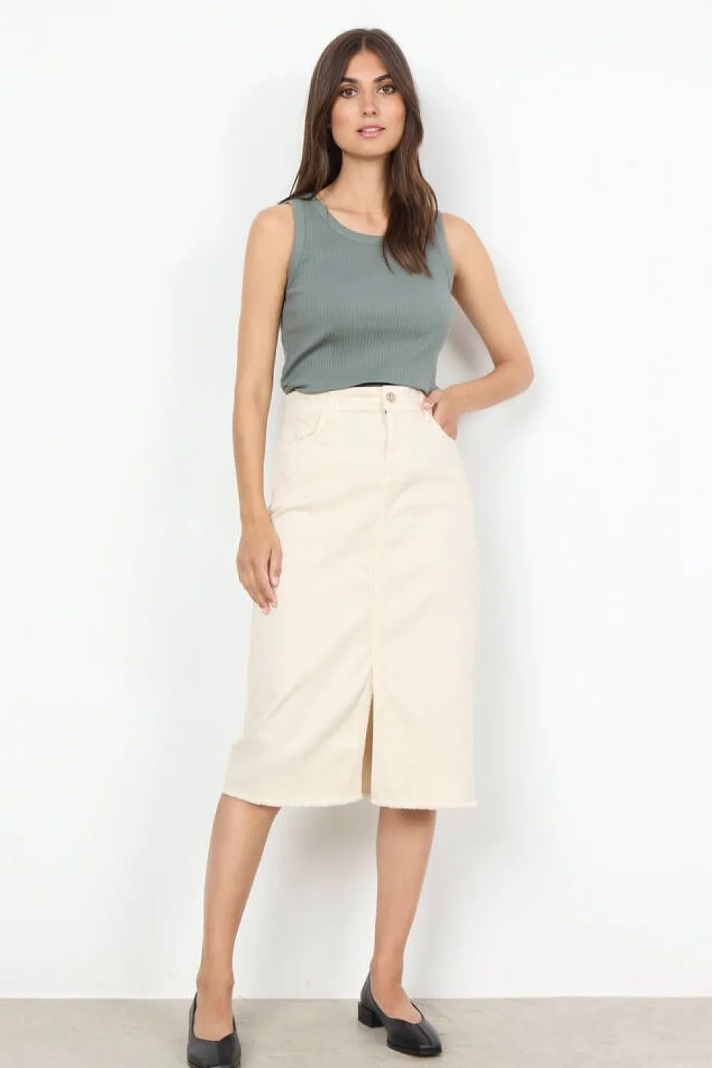 Puolipitkä farkkuhame etupuolen keskihalkiolla. Helmassa on tyylikäs raakareuna.Lisää tietojaHoito-ohje:Vesipesu 40K…