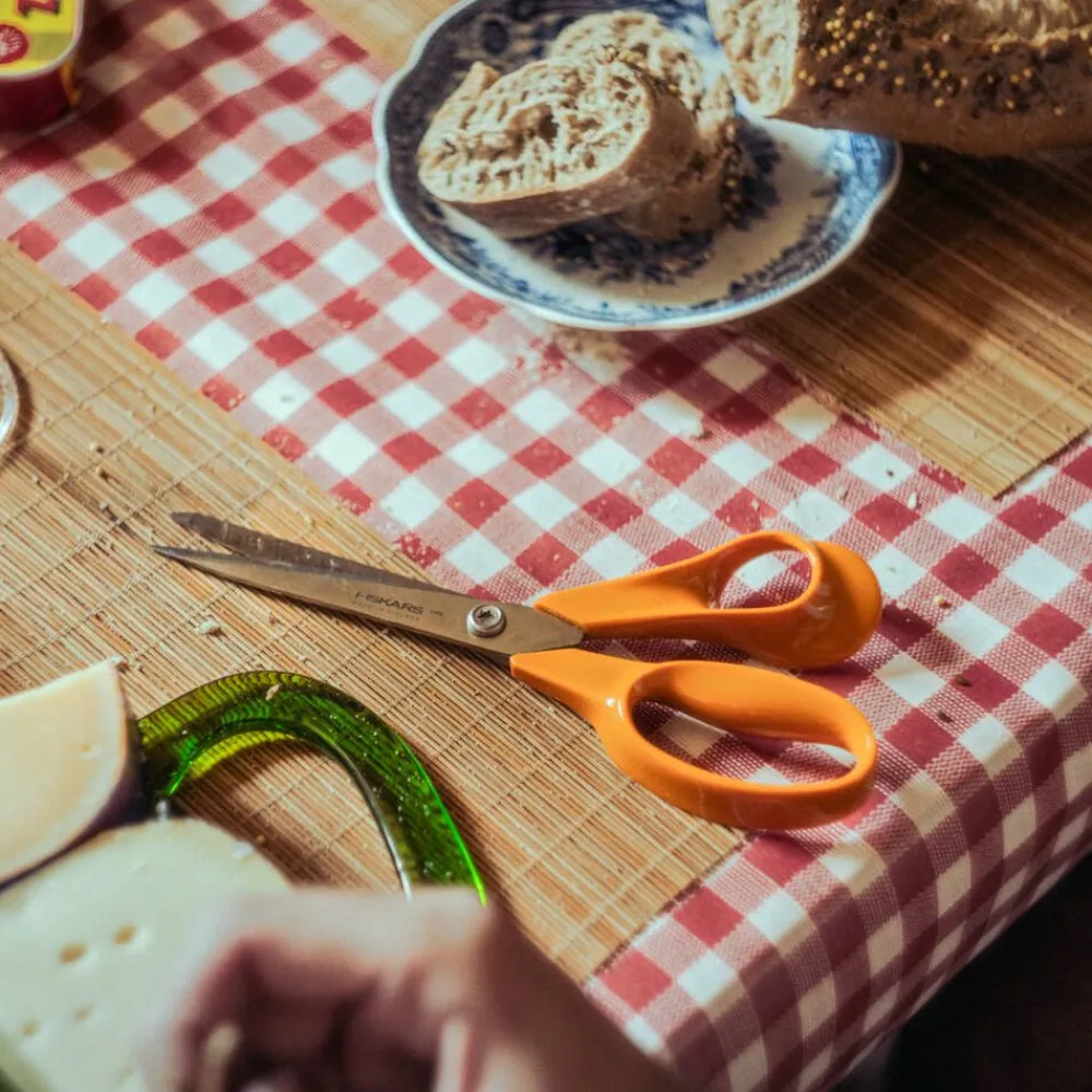 | Saksien leikkuuteho säilyy parhaana, kun terät teroitetaan säännöllisesti Fiskarsin teroittimella ja nivel öljytään aika ajoin. Käytön jälkeen sakset on hyvä puhdistaa, pestä ja kuivata heti, jotta esimerkiksi ruoka-ainejäämät eivät pääse tarttumaan. Lisäksi terän ruuvin kireyttä voidaan tarvittaessa säätää optimaalisen toimivuuden varmistamiseksi. |