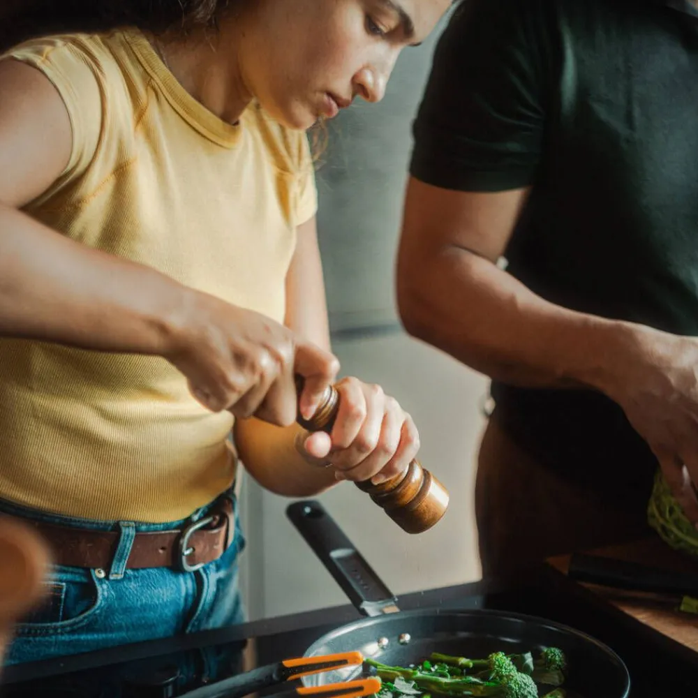 | Ihanteellinen pienempien annosten, kuten munien, vihannesten tai lihan, sekä herkkien ainesten, kuten kalan tai tofun, paistamiseen tai ruskistamiseen. |