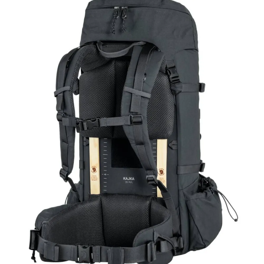 | Valmistettu kestävästä Vinylon F -kankaasta. Vahvikemateriaali kierrätetystä nailonista. Lisää säilytystilaa Kajka 35:een kiinnittämällä Kajka-sivutaskut sivuilla oleviin lenkkeihin: edessä on myös lenkit vaellussauvojen/jäähakkujen kiinnitystä varten. Päälokerossa on sisäinen verkkotasku. Täyspitkän päävetoketjun avulla repun koko sisällön saa helposti nähtäville ja järjesteltäväksi. Kansiläpässä on kolme vetoketjutaskua. Se voidaan irrottaa käytettäväksi hihnallisena pikkulaukkuna. Kaksi molemmin puolin olevaa kompressioremmiä takaavat tasaisen ja tehokkaan kiristyksen, jolloin sivutaskut ovat helposti käytettävissä. Yhteensopiva nesteytysjärjestelmän kanssa. Sisältää sadesuojan. |