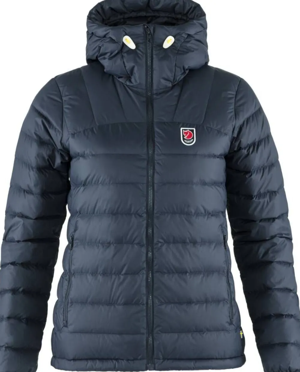 | Materiaali:Päällikangas ja huppu kokonaan kierrätetty polyamidi 100 %, eettisesti tuotettu ja jäljitettävä hanhen untuva 90 %, höyhen 10 % |