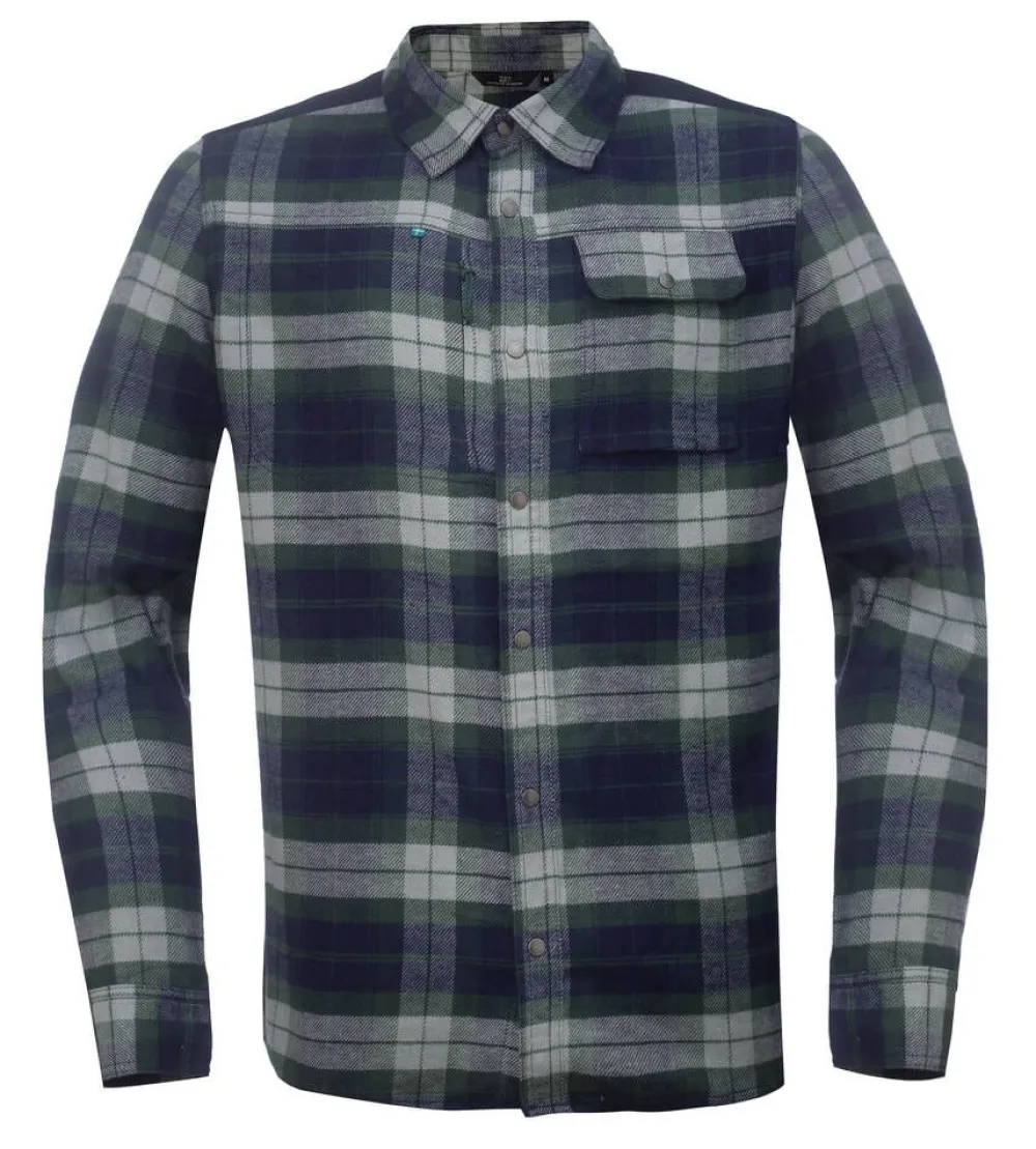 Tässä miesten flanellipaidassa yhdistyvät tyyli ja kestävyys. Valmistettu kierrätetystä kankaasta. Kaksi rintatask…
