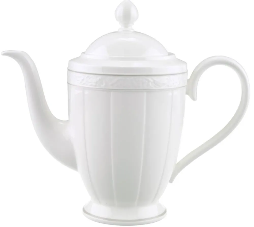 Gray Pearl astiasto on ylellistä, vitivalkoista luuposliinia. Koristeluna herkkä helmen harmaa siirtokuva ja lautasosi…