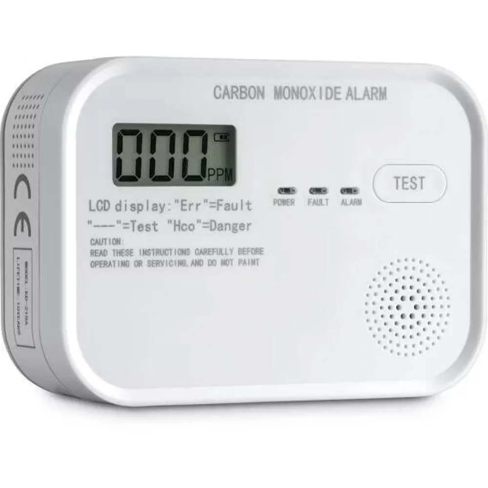 Häkävaroitin, jossa on digitaalinen näyttö häkäpitoisuuden tarkkailua varten. Elektrokemiallinen sensori, paristoj…