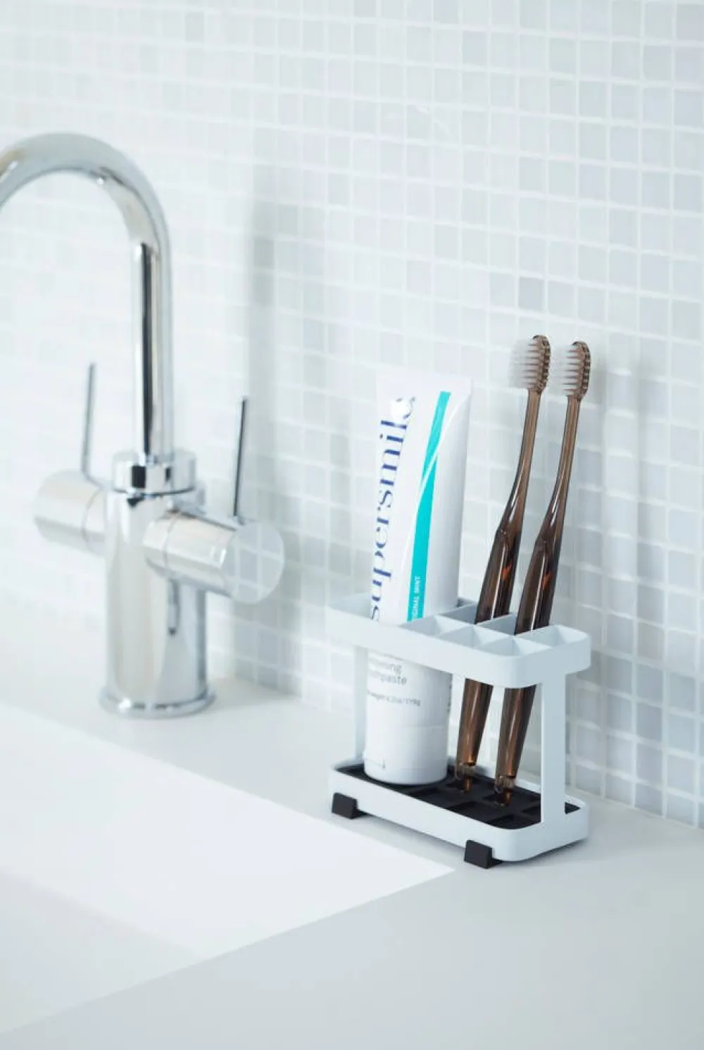 Tower hammasharjateline on yksinkertaisen tyylikäs ja siihen mahtuu 6 hammasharjaa ja hammastahnatuubi. Pohjan irrotett…