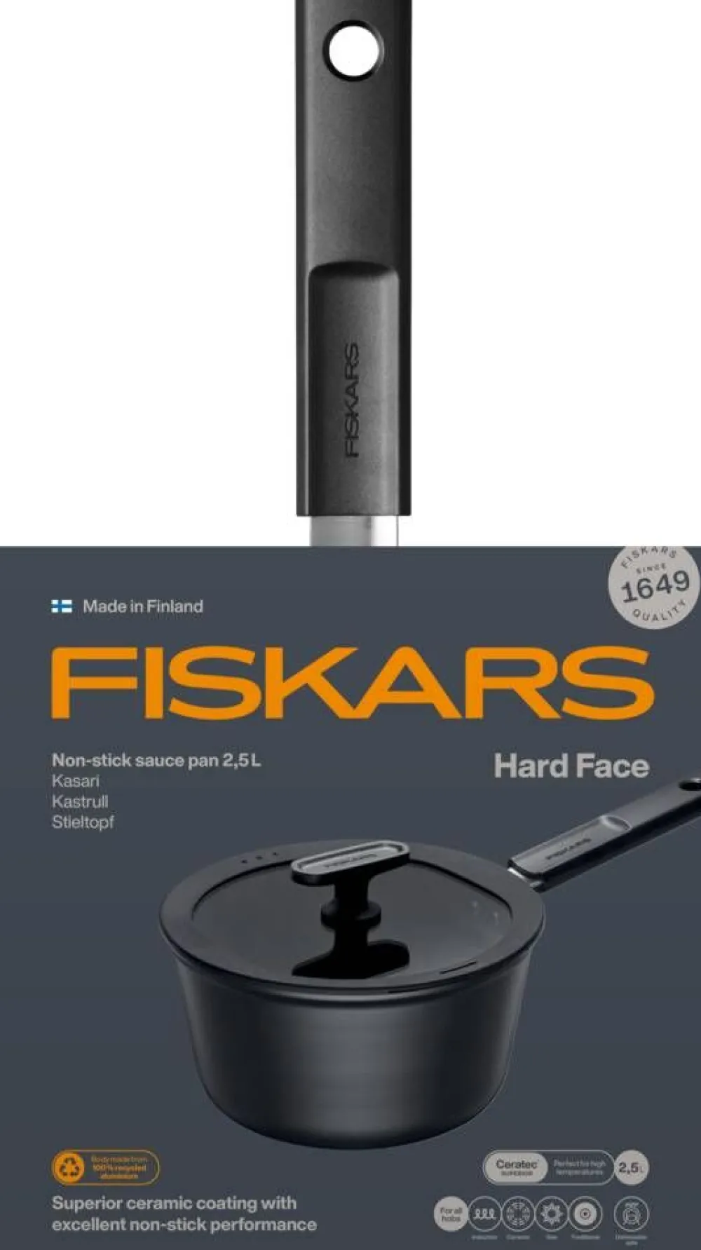 Fiskars Hard Face -pinnoitettu 2,5 litran kasari on suunniteltu haastaviin tilanteisiin ja kestää toistuvaa käyttöä…