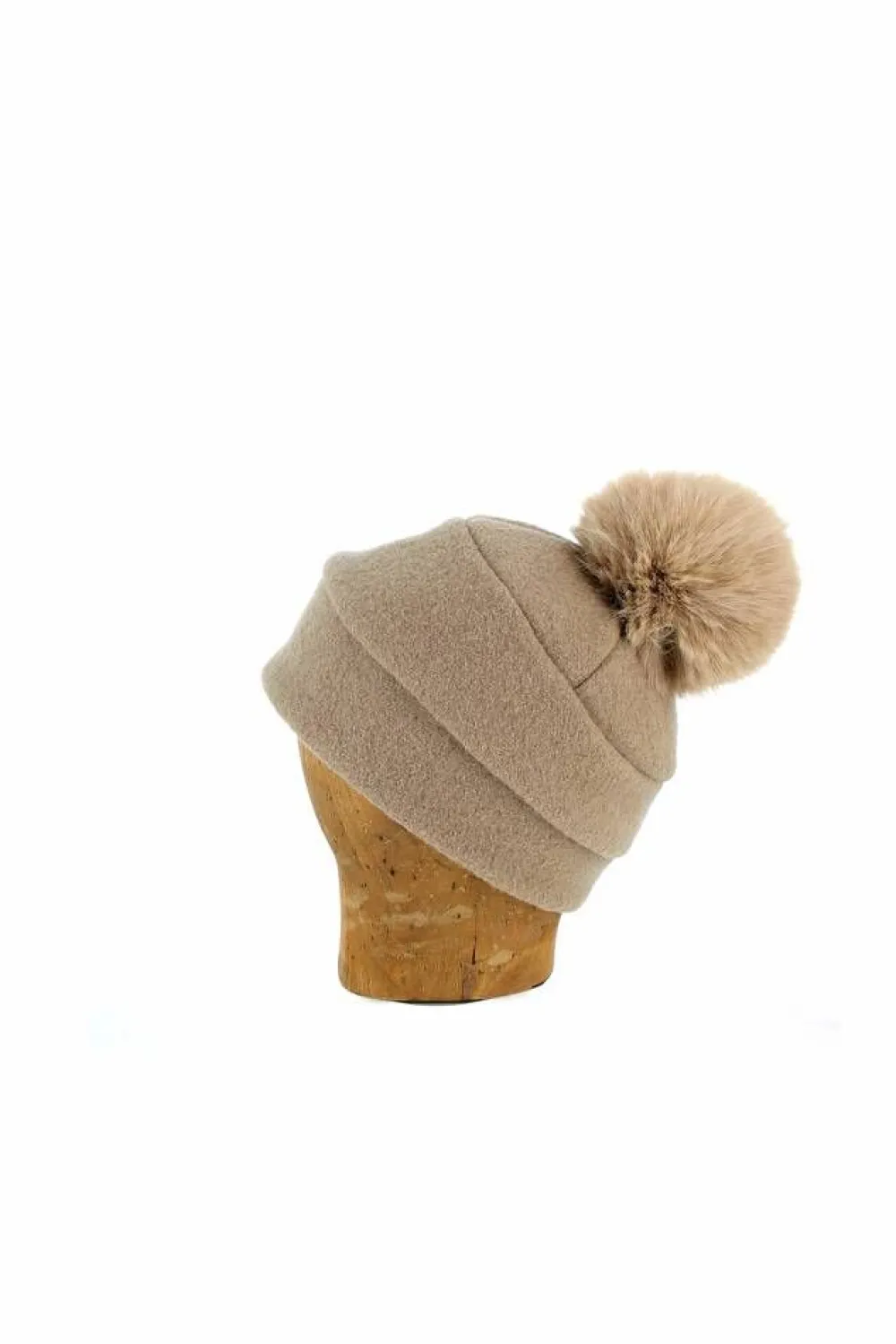 Tyylikäs huovutettu villahattu tekokarvatupsulla. Hatussa on leveä reunus.Lisää tietojaMateriaali:100% villaValmista…