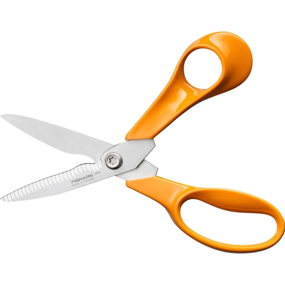 | Saksien leikkuuteho säilyy parhaana, kun terät teroitetaan säännöllisesti Fiskarsin teroittimella ja nivel öljytään aika ajoin. Käytön jälkeen sakset on hyvä puhdistaa, pestä ja kuivata heti, jotta esimerkiksi ruoka-ainejäämät eivät pääse tarttumaan. Lisäksi terän ruuvin kireyttä voidaan tarvittaessa säätää optimaalisen toimivuuden varmistamiseksi. |