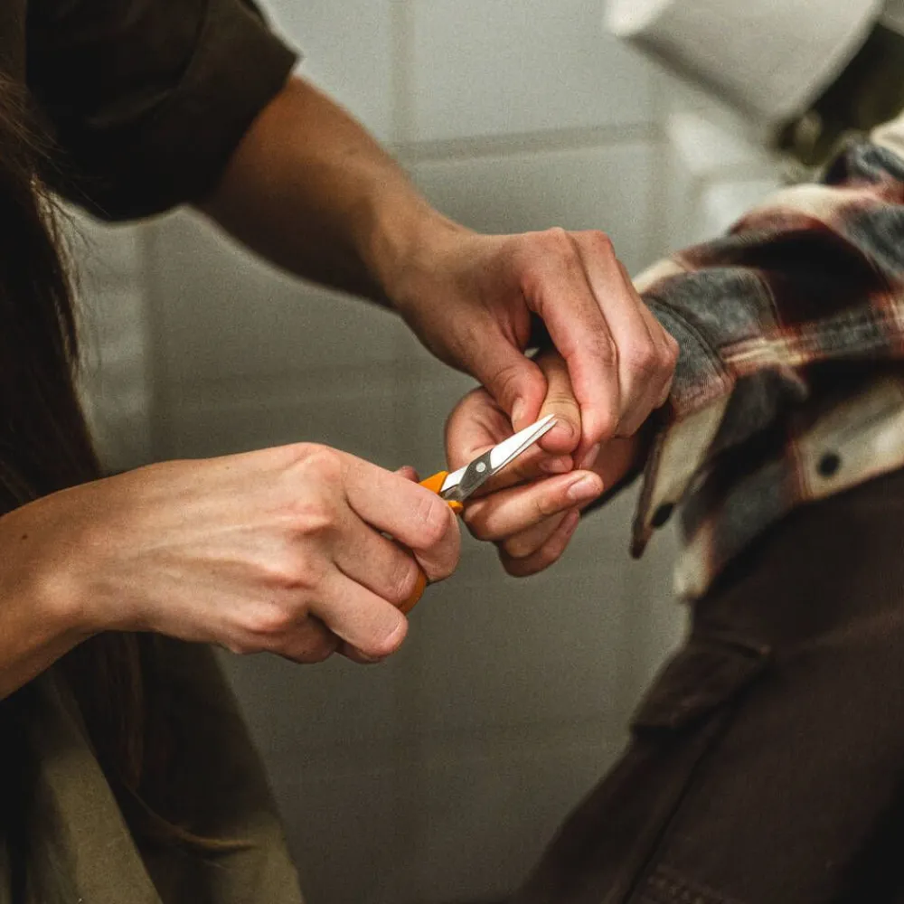 | Saksien leikkuuteho säilyy parhaana, kun terät teroitetaan säännöllisesti Fiskarsin teroittimella ja nivel öljytään aika ajoin. Käytön jälkeen sakset on hyvä puhdistaa, pestä ja kuivata heti. |