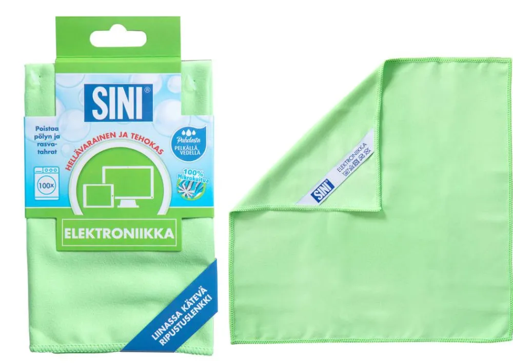| Hoito-ohjeet:Huuhtele mikrokuituliina aina käytön jälkeen ja kuivaa ilmavasti. Konepesu pesupussissa 40 asteessa. Kestää kymmeniä pesukertoja. Ei huuhtelu- tai valkaisuaineita. |