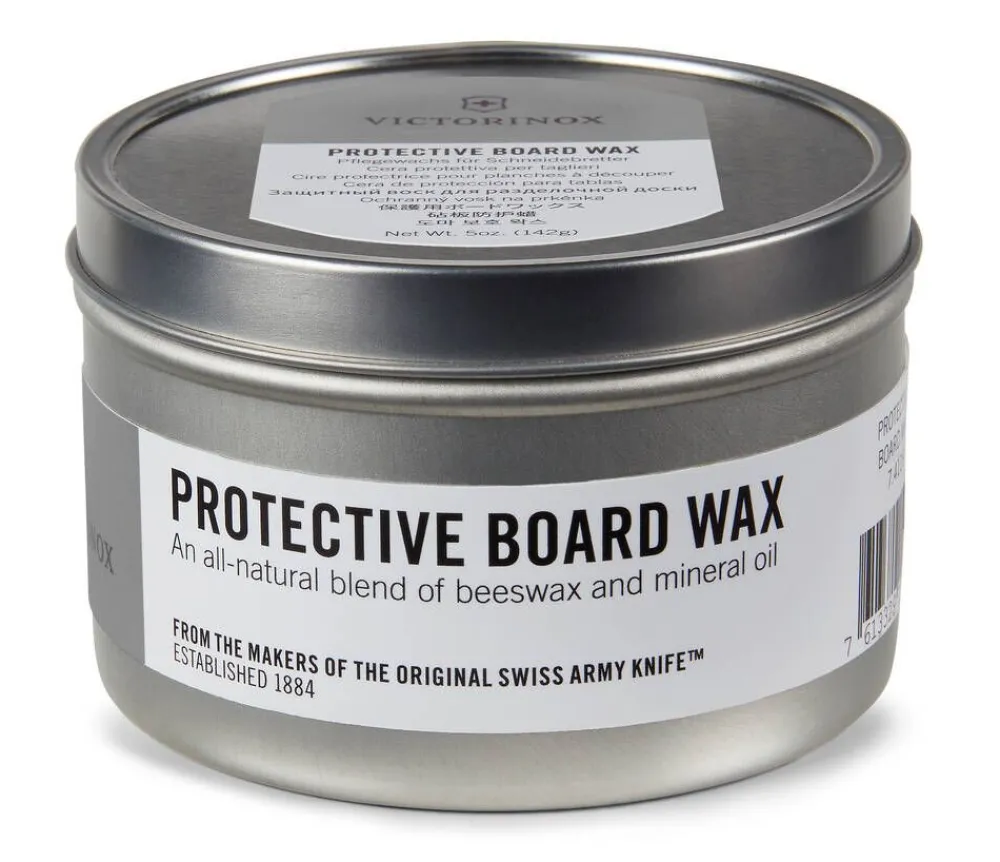 Mehiläisvahasta ja mineraaliöljystä koostuvan suojavahan säännöllinen käyttö auttaa säilyttämään Victorinox leikkuulautojen värin ja kiillon. Pese käsiteltävä tuote tavalliseen tapaan tiskiaineella ja kuivaa huolellisesti. Kun leikkuulauta on kuiva, voit levittää suojavahan mukana tulevan levityssienen tai puhtaan liinan avulla. Suojavaha on ensisijaisesti tarkoitettu Victorinoxin paperikompostiittileikkuulautojen ja -työvälineiden hoitoon, mutta sitä voidaan käyttää myös tavallisille puuleikkuulaudoille. Sisältö 148 ml.
