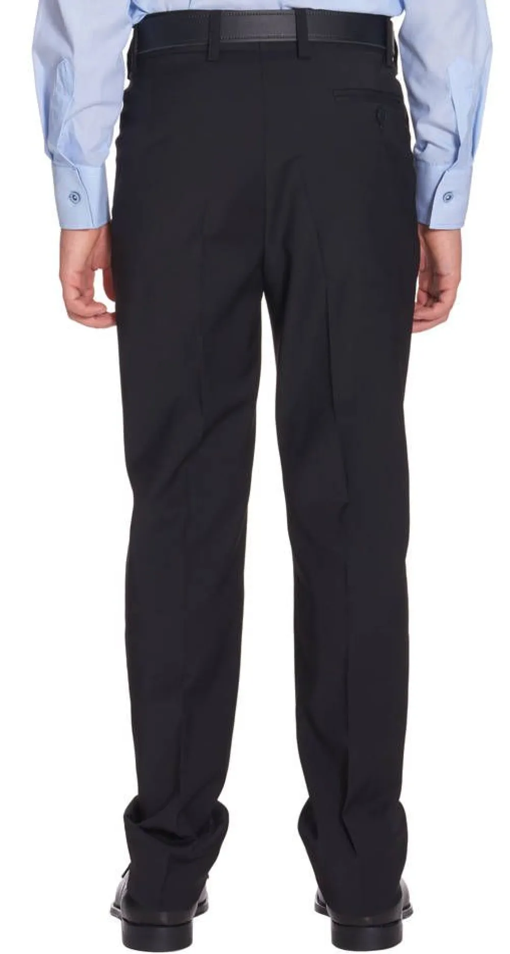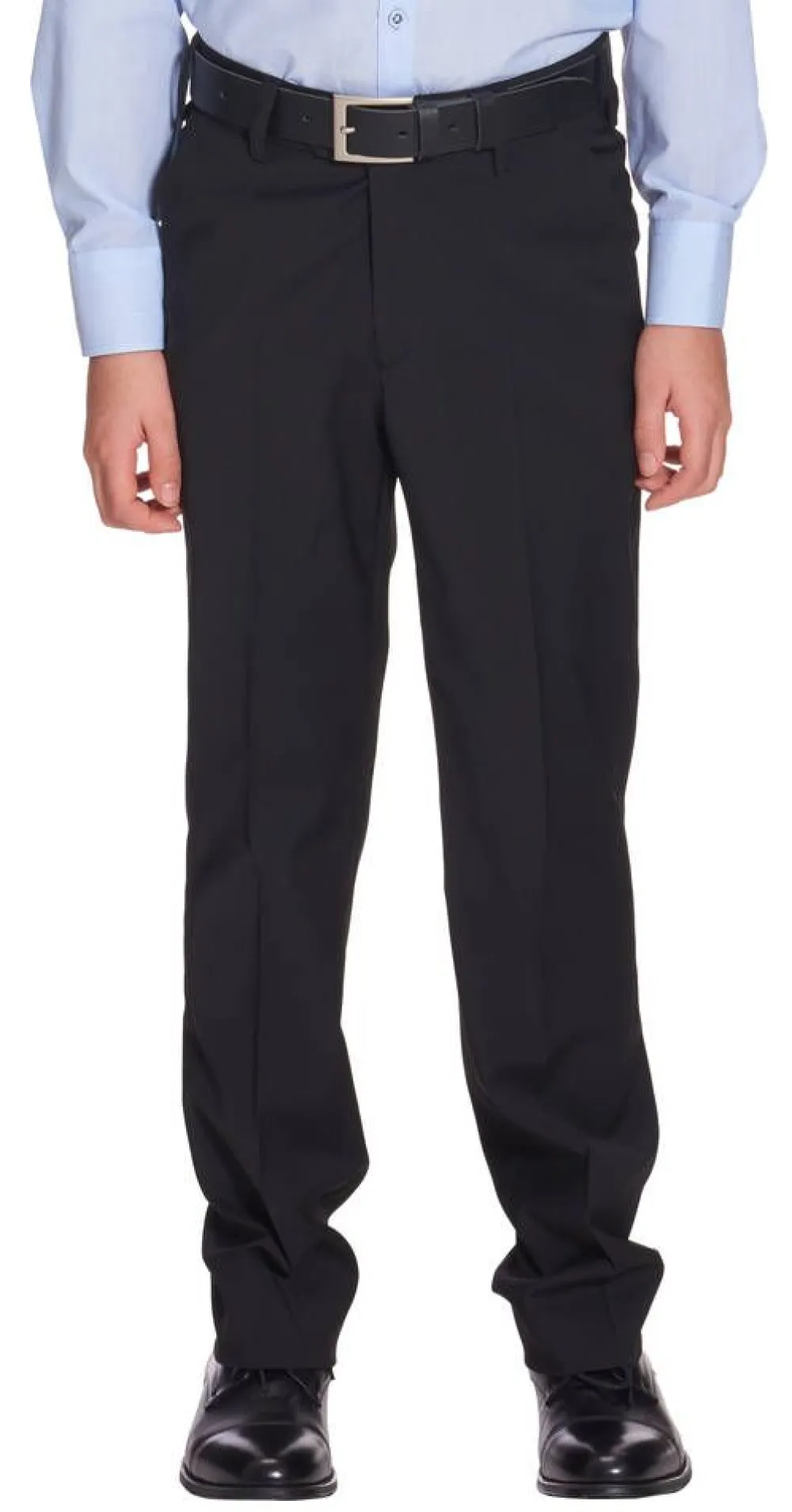 Upeat villasekoitteiset kapealahkeiset puvunhousut. Housujen etupuolella on kaksi tilavaa avotaskua ja takana yksi napil…