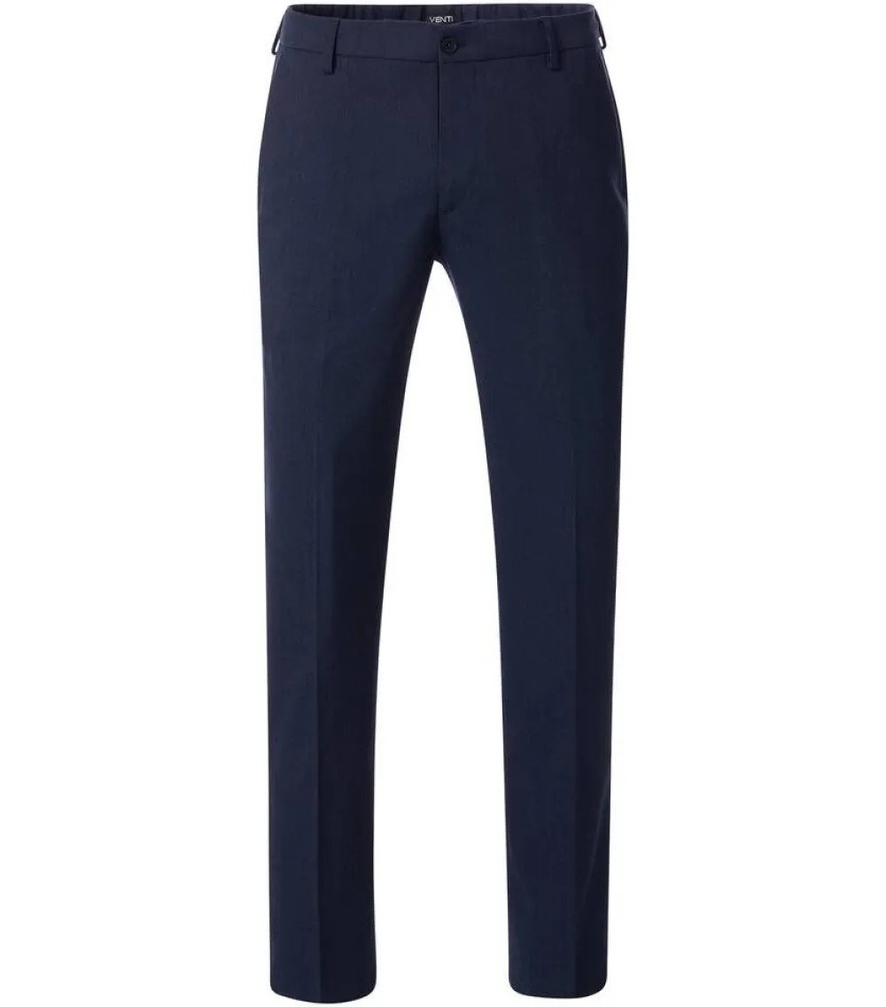Miesten siistit suorat housut vetoketjukiinnityksellä. Housuissa on prässätyt lahkeet, sivutaskut sekä nappikiinnitt…
