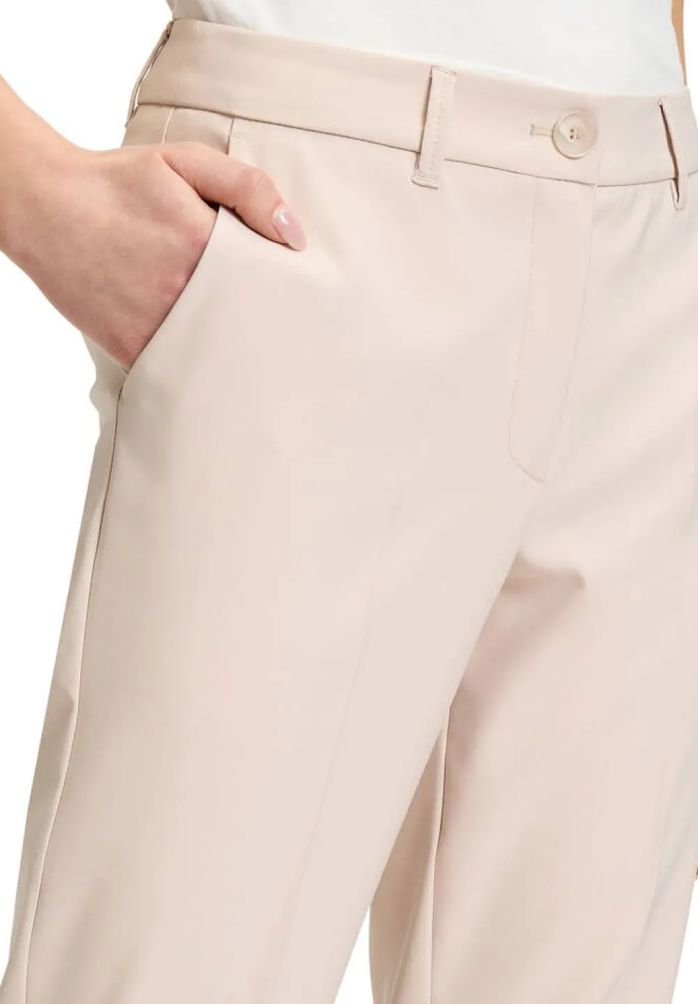 Naisten tyylikkäät prässihousut sivutaskuilla ja vajaamittaisilla lahkeilla. Tyylikkään kokonaisuuden saat yhdistä…