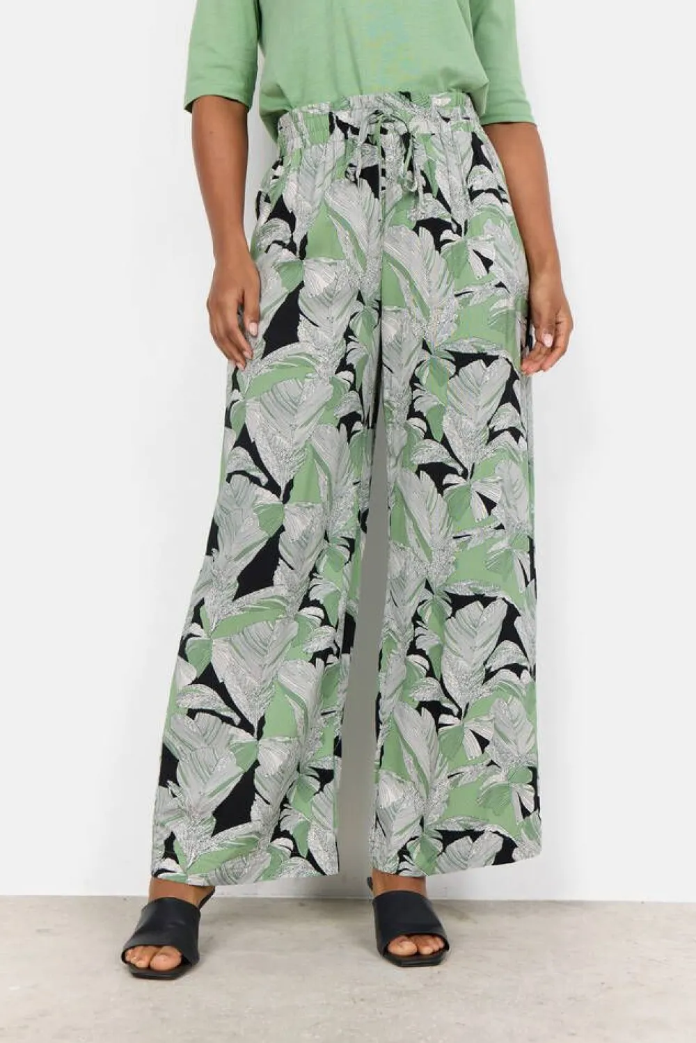 Leveälahkeiset printtihousut miellyttävällä kuminauhavyötäröllä.Lisää tietojaHoito-ohje:Vesipesu 30Materiaali:…