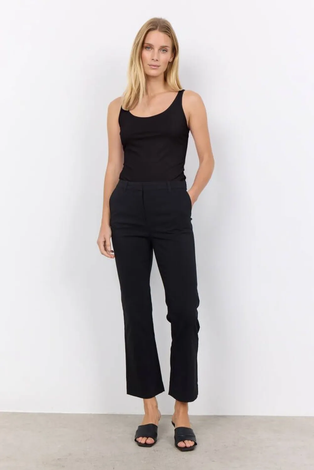 Nämä siistit mustat housut joustavasta materiaalista ovat miellyttävä ja samalla tyylikäs valinta arkeen tai juhlav…
